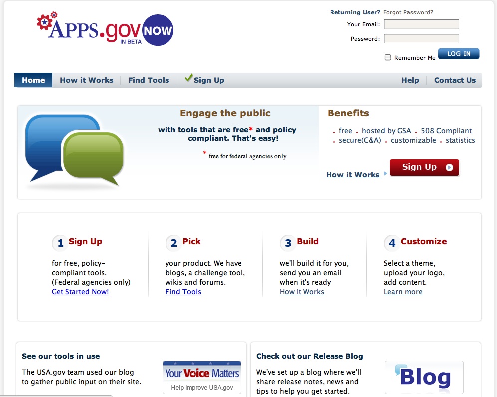 Today at Fedtalks in Washington, the General Services Administration’s director of citizen engagement, Gwynne Kostin, talked about its new open government platform, Apps.gov NOW. Apps.gov NOW launched in August but the Gov 2.0 community hasn’t heard much about it until this morning.