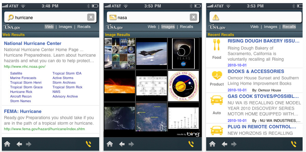 This October marks the 10th anniversary of USA.gov, the nation’s search engine for government. And, as it turns out, now there’s an app for that. Nope, it’s not Apps.gov of even Apps.USA.gov. The General Services Administration quietly added a new USA.gov iPhone app to iTunes a few days ago. Why is it important? When American look for government information, they use search engines. While most of them go to Google and Bing, now they have another option when they fire up a smartphone.