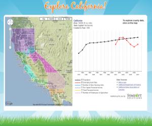 “Explore California” (info page) and the California Cage Fight mashups won the People’s Choice Awards. Explore California is similar to Data California, providing users with an interactive map and visualizations population, income, unemployment, new housing units, and other trends over time. Visitors can “compare and contrast the patterns of growth and decline in various categories and the relationships between them.”