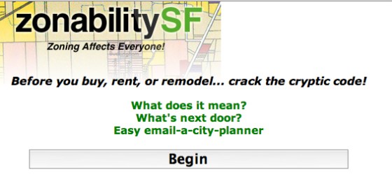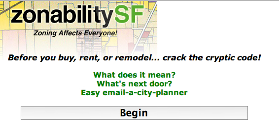 ZonabilitySF (info page) provides mobile access to San Francisco zoning ordinance information. This app includes geolocation, interactive zoning maps, resources about code and a mechanism to ask a city planner questions.